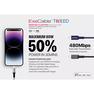 Upgrade to the Microdia Tweed USB-C to MFi Lightning cable—crafted for superior durability, seamless performance, and timeless style.