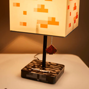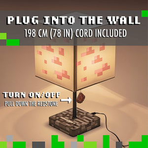 - MINECRAFT LAMP: Inspired by the material that powers up your creations in Minecraft, the Redstone Lamp features a redstone dust light pull cord that turns the light on and off and a redstone lampshade