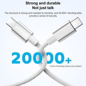 The MOMAX DC30 USB-C to USB-C cable is designed for fast charging and data sync. With a length of 1.5 meters, it provides flexibility and convenience for everyday use. The cable supports up to 60W power delivery, ensuring quick charging for compatible devices. Its braided design enhances durability and prevents tangling, making it a reliable choice for both home and travel. Compatible with a wide range of devices, this cable is perfect for anyone in need of a high-quality, efficient charging solution.