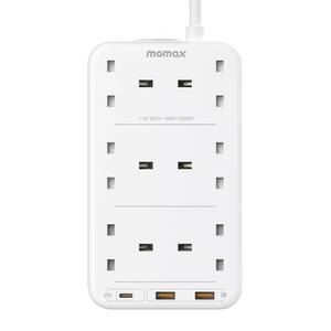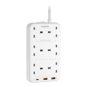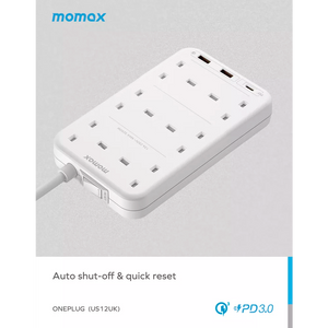 Momax - OnePlug - 6-Outlet Extension Plug Socket Power Strip - USB-C & 2x USB - White