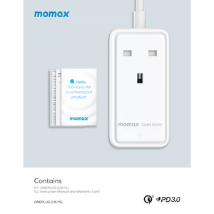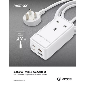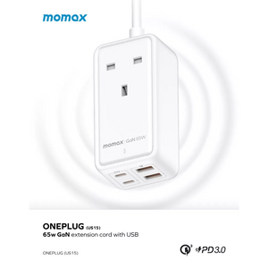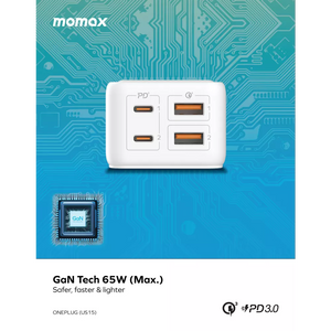 Momax - OnePlug - 65W GaN Extension Plug Socket Power Strip - 2x USB-C & 2x USB - White