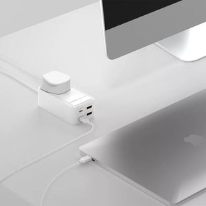 Our power strip utilizes cutting-edge Gallium Nitride (GaN) technology, extending a single socket to four USB ports and an additional socket. Experience efficient charging without compromising on space or convenience.