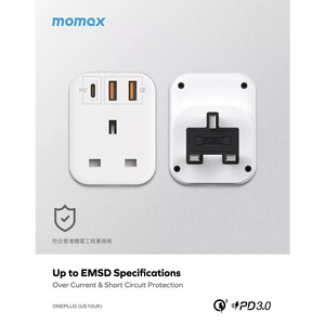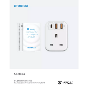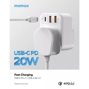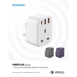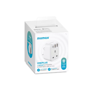 Momax - OnePlug - Extension Plug Socket Extender - USB-C & 2x USB - White