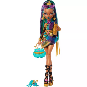 Monster High Nefera De Nile doll is a fiercely fashionable mummy with a heart of gold! She comes with a scary sweet pet and lots of glamorous accessories.