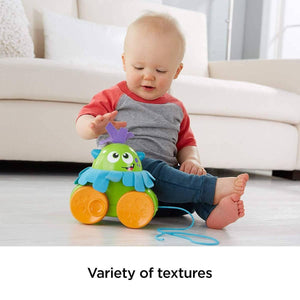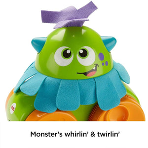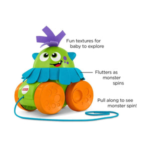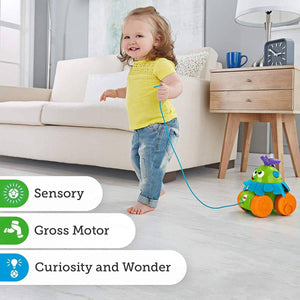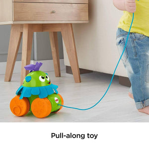 Fisher-Price Walk and Whirl Monster is a funny pull-along toy created especially for toddlers and nursery aged kids. Featuring a whirling and twirling head that spins around and pops up and down as the child pulls the toy around, the monster encourages your baby walker to keep going, while strengthening muscles and exercising gross motor skills along the way. By taking the monster for a walk and watching it come to life when pulling the string, kids can discover that their actions make fun things happen - an introduction to cause and effect. The bright colours, clicking sounds and a mix of interesting textures encourage your baby to explore and keep their senses occupied. Fisher-Price Walk and Whirl Monster helps give your toddler's developing skills a tug in the right direction.