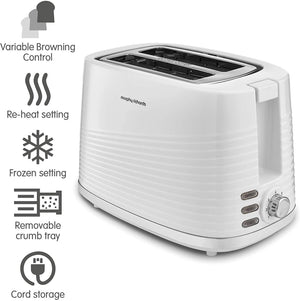 Morphy Richards Dune 2 Slice Toaster Defrost and Re-Heat Settings, Plastic, White