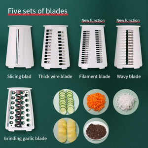 Versatile Blades: Equipped with multiple interchangeable blades, including slicing, thick and thin shredding, grinding, and wavy blades, catering to various food preparation needs.