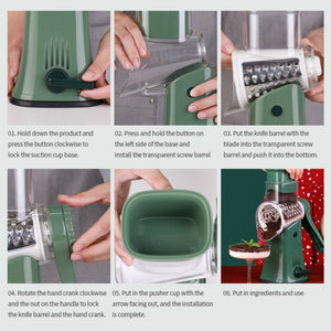 This multi-function hand roller vegetable slicer and grater is an essential kitchen tool, offering versatility and safety for efficient food preparation.