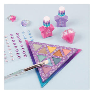 Get ready to sparkle with the Mystic Crystal Makeup set! This set includes shimmery eyeshadow colours and crystalline shapes that can be paired with face jewels and crystal rings for an extra glamorous look. Young trendsetters will have a blast experimenting with their personal style using the assortment of makeup in this set. The water-based nail polish components make it a great gift for kids aged 8 and up, perfect for any occasion.
