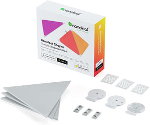 The Nanoleaf Shapes Triangles are modular LED light panels with a combination of smart technology and sleek ultra-thin design. It's perfect for designing a statement wall, setting up your personal productivity zone, or creating the right ambience for any occasion. Transform your space with multi-sensory experiences like touch interactions, real-time music sync, screen mirror, and more.