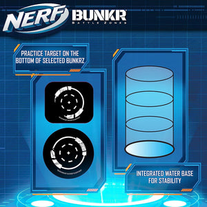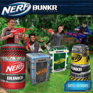 Nerf Bunkr Competition Pack - 4 Inflatables for Use with All Indoor and Outdoor Zones Game Fields-Features Battle Cards, Traffic Cone, Toxic Barrel, 2 Wooden Crates, 8+ Years