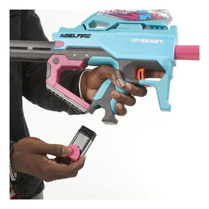 • FULLY AUTOMATIC NERF PRO GELFIRE X MRBEAST BLASTER: Fires up to 10 rounds per second.* Has full auto and semi auto modes, high-capacity 300-round hopper, and removable rechargeable battery