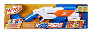 • NERF N SERIES STRIKEBACK BLASTER: Experience cool snapback action when you fire the Strikeback blaster! The side of the blaster kicks forward when you pull the trigger. Compatible only with Nerf N Series N1 darts