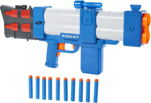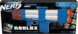 - NERF ROBLOX ARSENAL: PULSE LASER MOTORISED DART BLASTER: this dart-firing blaster takes its inspiration from the ones used in the Roblox game Arsenal! (4 x 1.5V AA batteries required, not included)