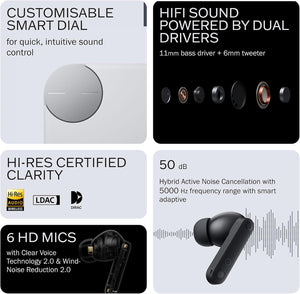 - YOUR ON-THE-GO SOUND FILTER: Enjoy pristine audio clarity and uninterrupted focus with advanced Hybrid Active Noise Cancellation of up to 50 dB and an expansive frequency range of up to 5000 Hz. The ANC technology efficiently silences a wide spectrum of ambient sounds – from everyday conversations to rumbling subway trains