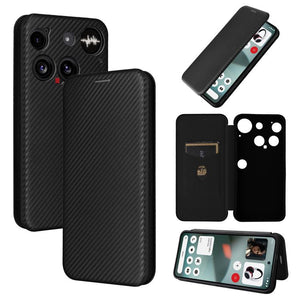 Nothing Phone 3 5G Carbon Fiber Texture Flip Leather Case - Black