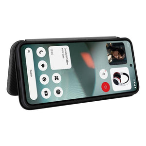 Protect your Nothing Phone 3 5G with this premium carbon fiber texture flip leather case in black. Designed for both style and functionality, this case offers full-body protection while maintaining a sleek profile. The carbon fiber texture not only enhances grip but also adds a touch of elegance to your device. Enjoy easy access to all ports and buttons, ensuring seamless usability. The interior features a soft lining to prevent scratches, making this case a perfect blend of form and function.