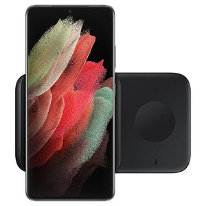 With this Original Samsung Wireless Charger Duo Pad 9W you can charge 2 devices simultaneously wirelessly. With this Wireless Charger Duo Pad, the use of all kinds of cables and wires to charge your smartphone is a thing of the past. The compact design makes this Wireless Charger Duo Pad a handy wireless charger with which you can charge your smartphone, Galaxy Buds or Galaxy Watch super-fast thanks to 9W Fast Charging technology.