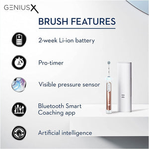 The Oral-B Genius X are equipped with motion sensors and powered by artificial intelligence to recognize your brushing style and guide you to your best results every day. Now it's easier than ever to brush like your dentist recommends for a superior clean, for healthier gums.