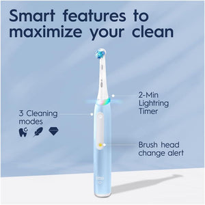 Oral-B iO3 Electric Toothbrush For Adults, 1 Toothbrush Head, 3 Modes With Teeth Whitening, 2 Pin UK Plug, Blue