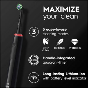 Oral-B Pro 3 Electric Toothbrushes For Adults, 1 Cross Action Toothbrush Head, 3 Modes with Teeth Whitening, 2 Pin UK Plug, 3000, Black