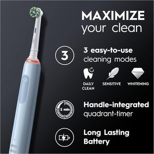 Oral-B Pro 3 Electric Toothbrushes For Adults, 1 Cross Action Toothbrush Head, 3 Modes with Teeth Whitening, 2 Pin UK Plug, Blue