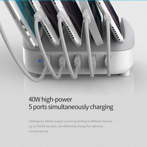 ORICO DUK-5P 40W 5 USB Ports Smart Charging Station with Phone & Tablet Stand - White