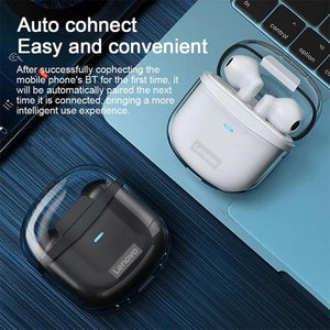 Original Lenovo XT96 Noise Reduction Semi-in-ear Bluetooth Earphone with Transparent Jelly Charging Box (Black)