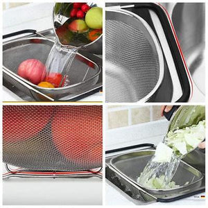 Over Sink Strainer Stainless Steel Colander Drainer Expandable Mesh