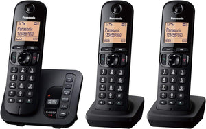 Panasonic DECT Cordless Phone with Answering Machine, 1.6 inch Easy-to-Read Backlit Display, Nuisance Call Blocker, Hands-Free Speakerphone, ECO Mode - Black, Trio Handset Pack