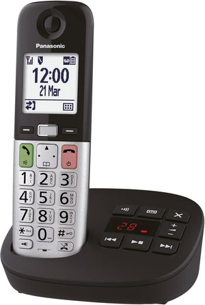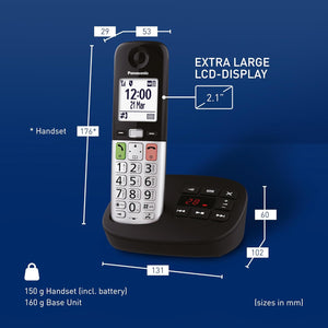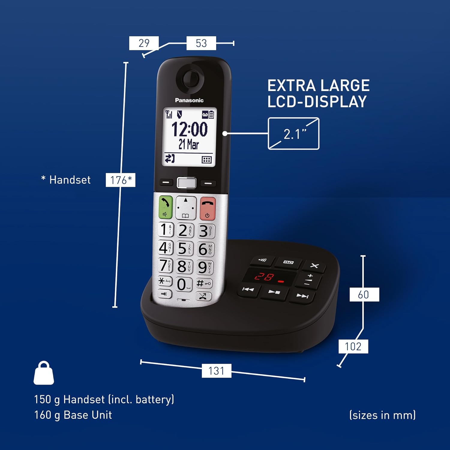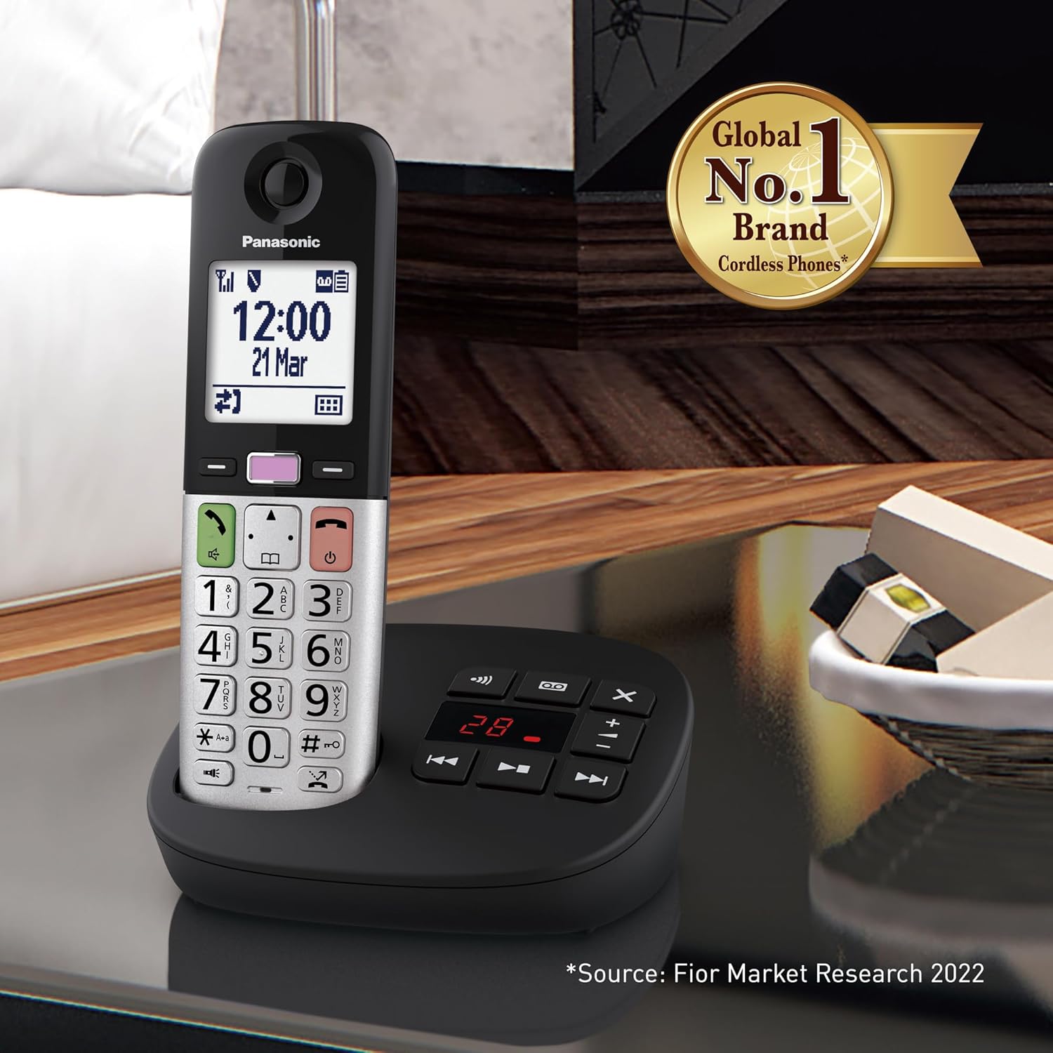 Panasonic Digital Cordless Landline Phone with Answering Machine, Base Unit & 1 Handset, LCD Display, Fav Call, Torchlight, Hearing Aid Compatible, Black & Silver