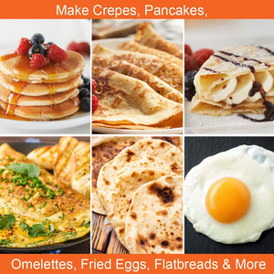 - ACCESSORIES INCLUDED – In order to create the perfect pancake, the set comes complete with a wooden spreader to achieve your desired pancake thickness and a spatula which is great for flipping your sweet treats. A ready to go recipe sheet for both sweet and savoury treats is also included, so you can enjoy trying different flavour combinations!