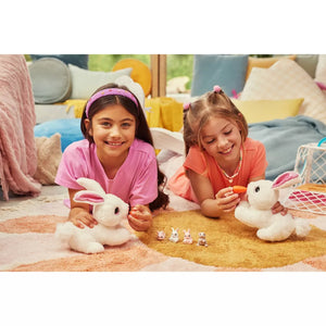Get ready for an extra hoppy time with Mama Bunny & Baby Surprise! With floppy ears, a fluffy tail and surprises hidden inside, Mama Bunny truly comes alive with over 10 sounds! Mama's babies are playing hide and go seek! How many baby bunnies will you find hidden inside the bunny cage? Will it be 2...3...or 4? Don't forget to feed Mama her carrot and give her cuddles. Hop along for serious fun!