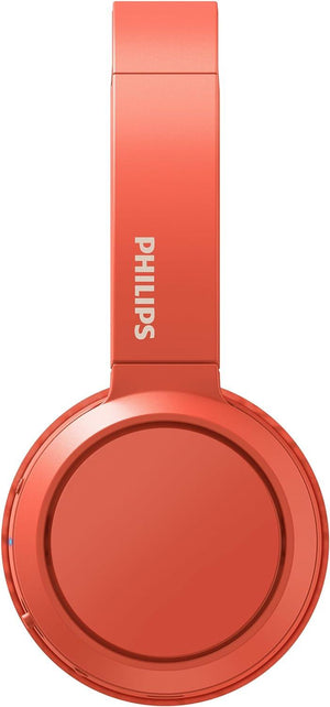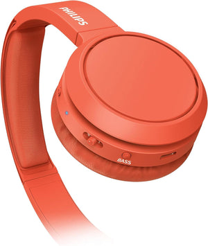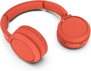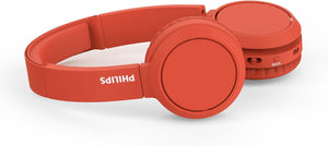 PHILIPS On-Ear Headphones with Bass Boost Button (Bluetooth, 29 Hours Playback Time, Quick Charging Feature, Noise Isolating, Flat Folding), Matte Red - Model, On-Ear