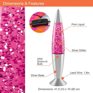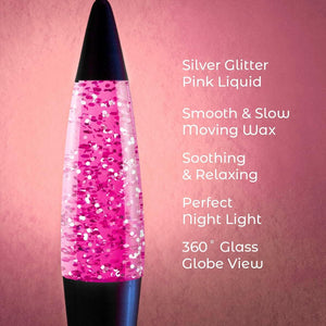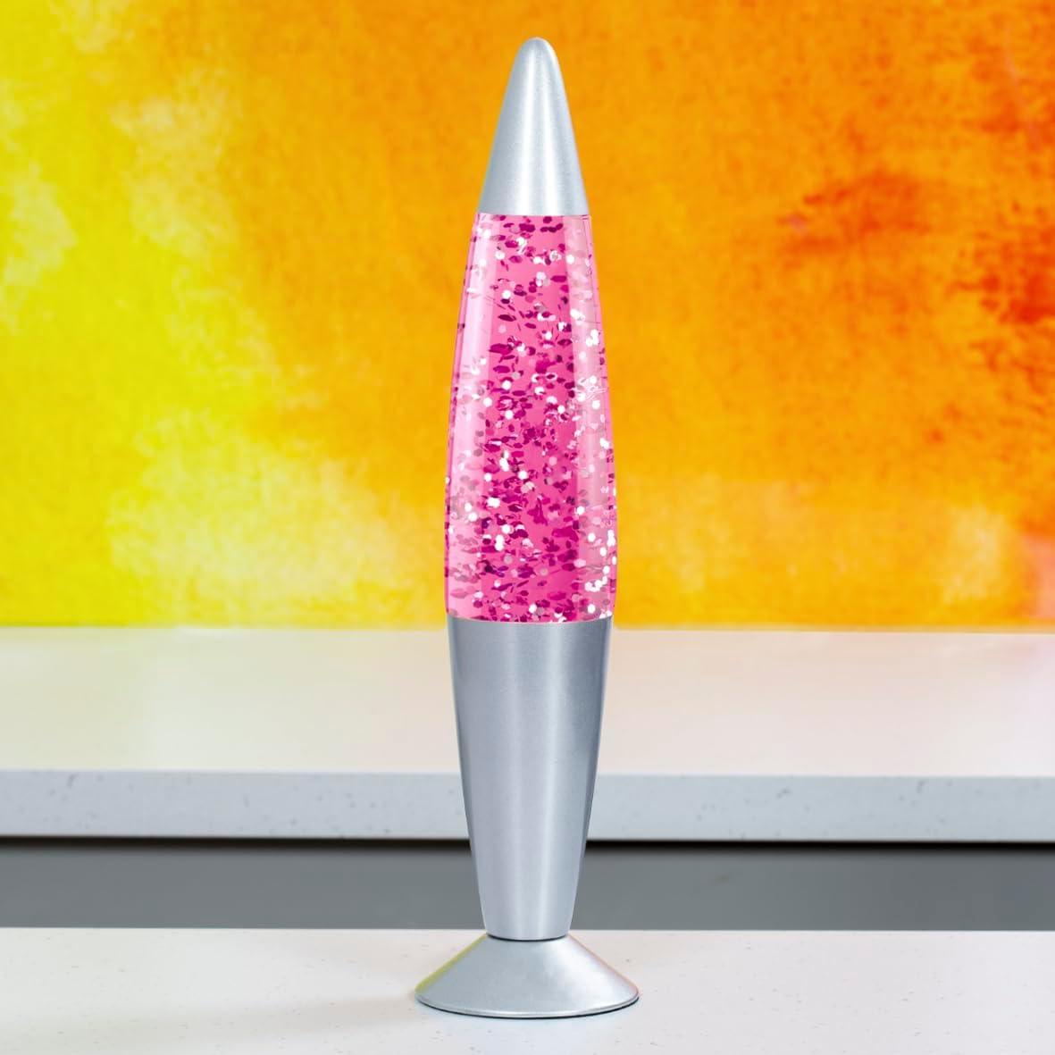 - PINK GLITTER – This lava lamp features sparkly glitter inside a vibrant pink liquid, giving it a unique look & feel, as well as giving off a futuristic & unique finish.