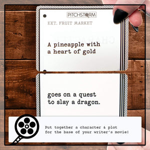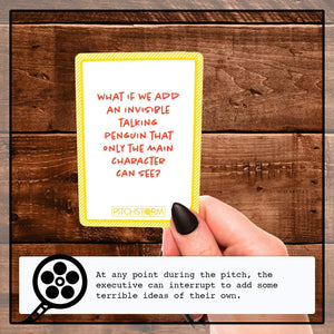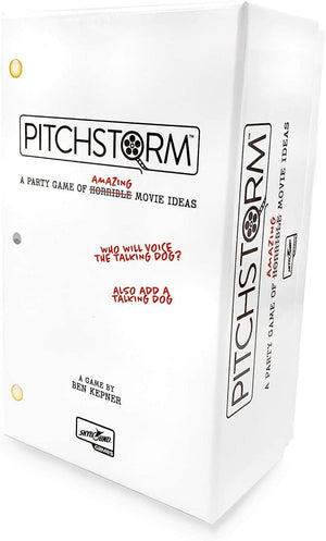 - A BLOCKBUSTER HIT IN THE MAKING. Pitchstorm is a party game that puts you in the position of an unprepared writer pitching movies to the world's worst executives. Writers have to pitch their movie idea, and figure out a way to incorporate the random notes thrown by the executives on the spot.
