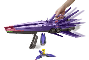 - Recreate scenes from the thrilling animated adventure with this 20-inch long spacecraft. Use the handle on top to manage intense flying maneuvers. The bright green taillights and engine sounds make for realistic battle play!
