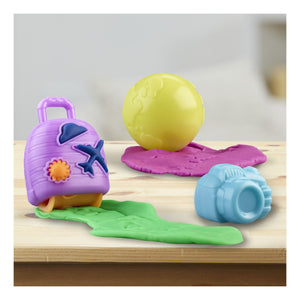 • 3 GLOBETROTTING ACCESSORIES: Stamp different countries into Play-Doh compound with the globe roller, make fun shapes with the luggage roller, and mold a postcard with the camera