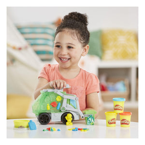 • MOULD IT, MASH IT, BAG IT: create and collect bits of Play-Doh rubbish or recycling! Dump them into the lorry and reshape them into a bin bag! The lorry's cab is a removable mould that makes a friendly driver