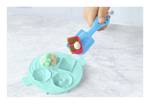 • EASY-TO-USE MAGICAL MIXER MECHANISM: children can attach one of the two trays to the bowl, fill each mould with Play-Doh modelling compound, and pull the handle to stamp two pretend treats at a time!