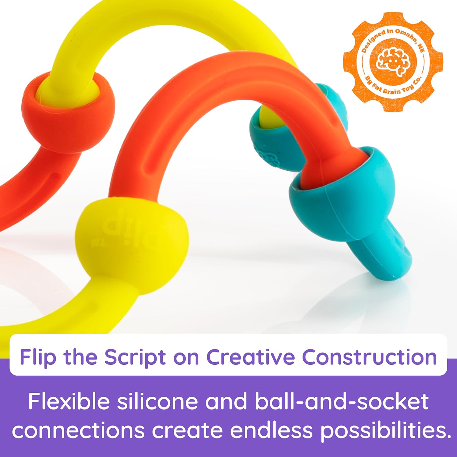 Fat Brain Toys Plip Kit | 52 Piece Bendy Silicone Link Toy Building Set in a Variety of Shapes, Sizes and Colours | Sensory Toys