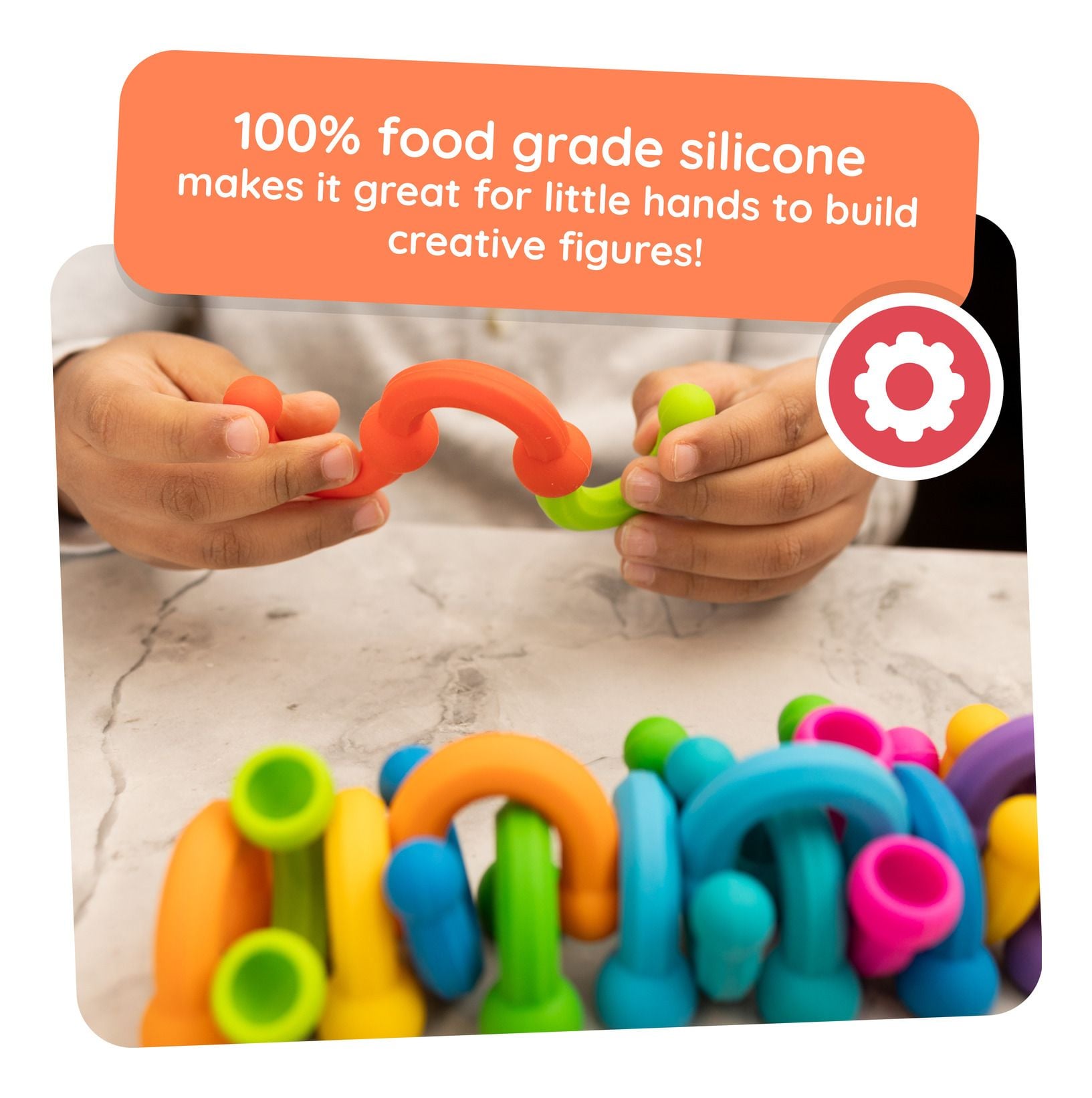 - UNIQUE CONSTRUCTION TOYS: Let your child's imagination pop with Plip Link, the creative construction set for exciting sensory play. These 100% silicone links easily connect to form rainbow chains, swirling sculptures, goofy characters, and more.