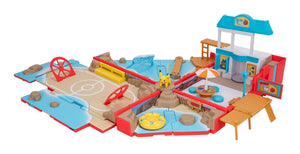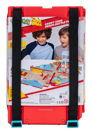 Take command in the sand with the Pokémon Carry Case Beach Battle Playset. This portable playset unfolds from a compact backpack into a stunning waterfront environment and includes four unique play zones. Take the included 2-inch Pikachu Battle Figure on a stroll down the boardwalk and have a snack at the town cafe. Then, head down to the beach and play in the tidal wave pool or walk across the balance beam. From there, climb over the rock wall to enter the beachside battle gym and use the launchers to challenge your rivals. Finally, lay out in the water tube and relax in the sun until you’re ready to pack it in. When you’re done, the playset will neatly transform back into a backpack and you can bring it along on your next adventure. Compatible with any battle-ready 2-inch Pokémon Battle Figure (sold separately). Officially licensed by Jazwares. Ages 4+ Includes: (1) Carry Case Beach Battle Playset (1) 2-Inch Pikachu Battle Figure