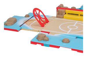 - PLAY ZONES: Features numerous interactive beach environments and two battle launchers.