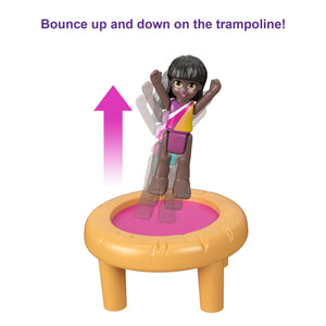 - Kids can discover these fun activities: a dance floor that spins, a stage that folds down for performances, spin a doll on the balance beam, bounce on the trampoline, hang from the gymnastic rings and more.