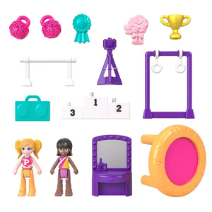 Get ready for dance fun with Polly Pocket! Perfect for play at home or on the go, this Sparkle Stage Bow compact has a beautiful bow exterior with two-way sequins. Open the compact to reveal an exciting dance-themed adventure with 5 surprise and delight features, 12 accessories (some with a Pop & Swap peg feature) and micro Polly and friend dolls. Discover and play out the storytelling fun with the dance floor that spins, the stage that folds down for performances, a doll that can spin on the balance beam, bouncy trampoline and gymnastic ring fun. Peg pieces into different areas of the compact for endless play possibilities! The compact also comes with a wristlet strap so kids can take it on the go for fun Polly Pocket adventures anytime, anywhere! colours and decorations may vary. Makes a great gift for ages 4 years old and up.