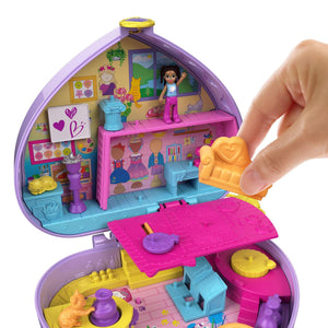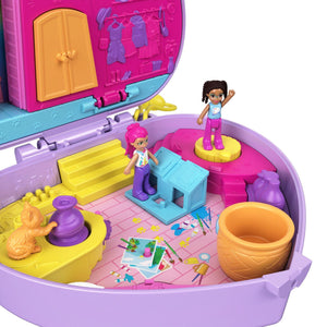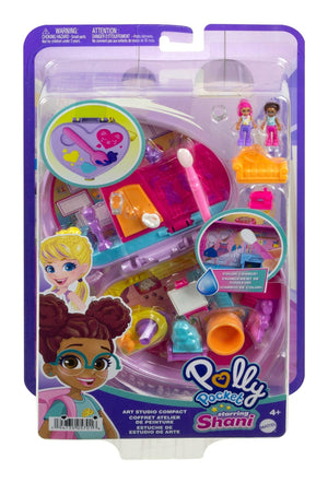 - The Polly Pocket™ Starring Shani™ Art Studio compact features an adorable heart-shaped case design with a paint brush and heart icons on the exterior and comes with micro Shani™ and friend dolls.