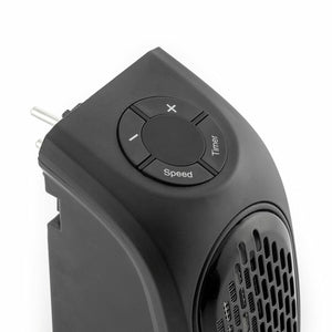 A portable mini plug heater that provides heat quickly and efficiently. It takes up very little space and is an excellent choice for combating cold in small spaces.