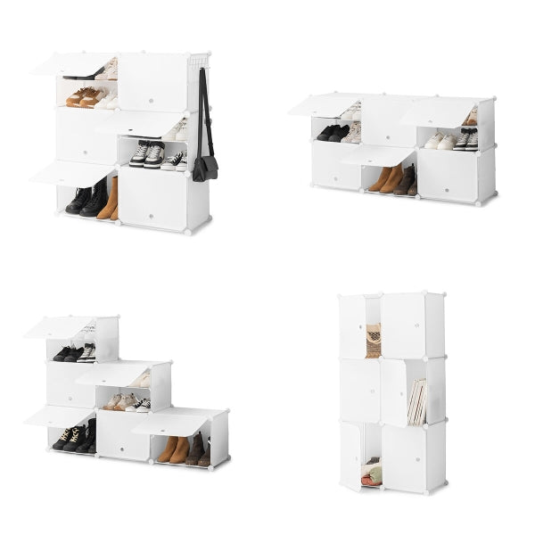 - Modular design, various shapes-sizes: our portable modular shoe rack is made up of various demountable modules with shelves for storing all types of footwear tidily. Thanks to its versatile and adaptable design, it can be assembled with different combinations of modules, with or without doors, with or without internal shelves, etc. Models: Levoux-Levout-Levoun (white). Capacity: 20-28-36 pairs.