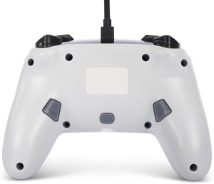 Officially licensed by Nintendo, the PowerA Enhanced Wired Controller for Nintendo Switch combines beauty and performance. Each controller includes world-class art, along with awesome gaming features. Program two mappable Advanced Gaming Buttons on-the-fly, plug in your headset for stereo sound, and enjoy smooth thumbstick control thanks to a pair of embedded anti-friction rings. Includes a 10ft (3m) USB cable, plus PowerA backs all products for 2-years to reinforce quality commitment. *For use only while Switch is docked. Does not support HD rumble, IR, motion controls or amiibo NFC. Not for use with Joy-Con only games.